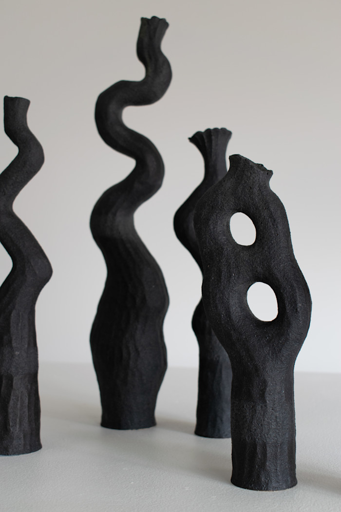 SOLD A pair of hand-built vessels, each form made to complement the other, dancing and nestling together when displayed as a set, but also beautiful stand-alone objects when displayed separately. Size: 37cm and 52cm