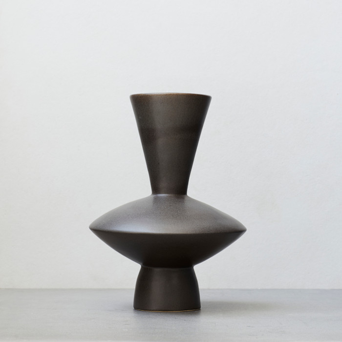 SOLD OUT Each STEVIE is skillfully handmade by artisans in small batches, resulting in one-of-a-kind pieces refined by simplicity and femininity. This vessel was created for both functional and decorative use for you to enjoy every day. Produced from the highest quality Australian stoneware, in-house studio glaze recipes and twice fired to vitrification. Our forms will vary from piece to piece resulting in unique and individual creations perfect in their imperfection. Dimensions: 260 H x 190 W Charcoal matte glaze